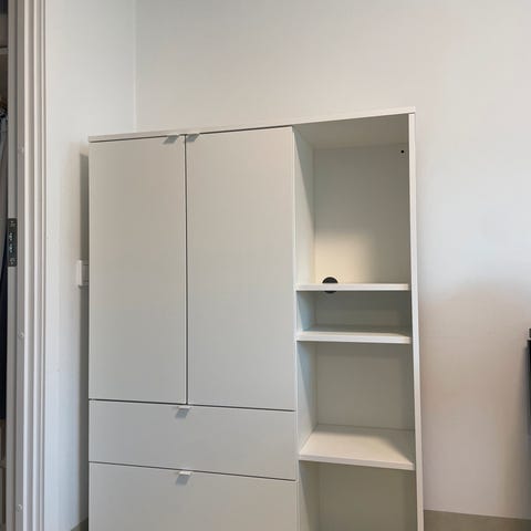 Garderobeskap til barn/ungdomsrom. 3 skuffer nederst. Kurv og mulighet for å henge klær i øvre del. Godt brukt, men fortsatt litt bruk igjen 😊