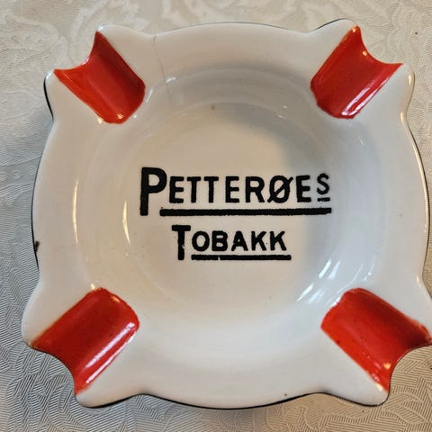 Petterøe fyrstikkeske tosidig. Er en fyrstikkeske ubrukt. Reklame, samleobjekt, landhandel. Sender mot porto.