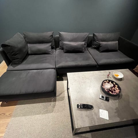 Söderhamn-sofa med én 3-seter og to 1-setere. De to 1-seterne har trekk som passer til 3-seter.