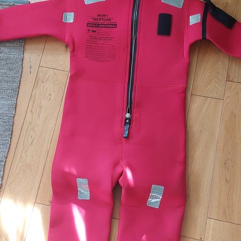 Mullion Buoyancy Aid 50 redningsdrakt i størrelse S, tilpasset brystmål 90-97 cm og høyde 171-178 cm. Drakten er rød og svart, laget med Climatec-materiale og designet for å gi flyteevne og beskyttelse ved vannaktiviteter.