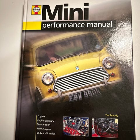 Haynes New Mini Performance Manual bilbok med detaljerte instruksjoner om motor, girkasse og drivverk. Inneholder tekniske spesifikasjoner og veiledning for vedlikehold og reparasjon av New Mini.