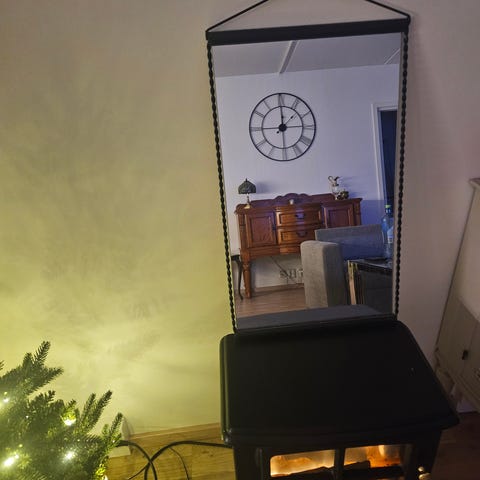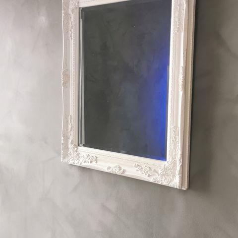 Svart speil som er delt inn i felter selges pga. flytting. Bredde 70 cm. Høyde 100 cm.
