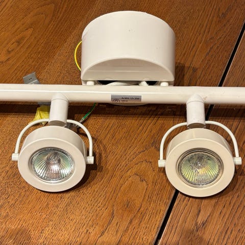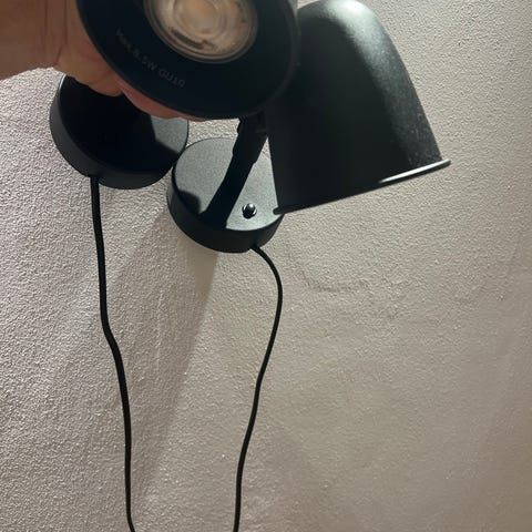 har to uåpnede vegglamper med tilhørende nye pærer for salg.