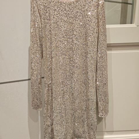 Pent brukt kjole med nydelig farge. Kjolen er laget med paljetter som gir et glitrende utseende.
