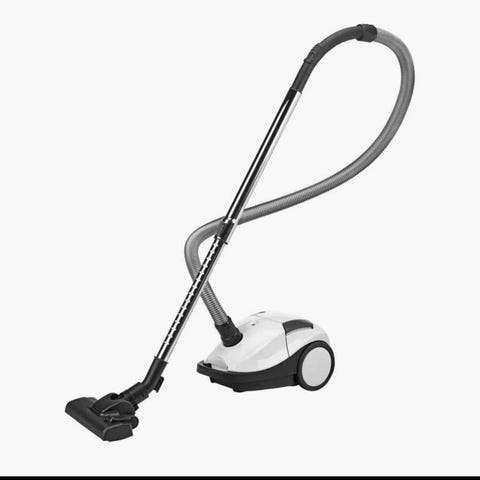 Emerio Vacuum Cleaner modell VCE-180272, farge blå og svart. Støvsuger med beholder for oppsamling av støv, uten pose. Den har en effekt på 900W, støvbeholder på to liter, og HEPA-filter for å fange opp støvfnugg, dyrepels, og pollen. Den har en rekkevidde på ni meter, med 150W sugekraft for effektiv rengjøring.