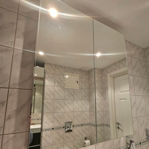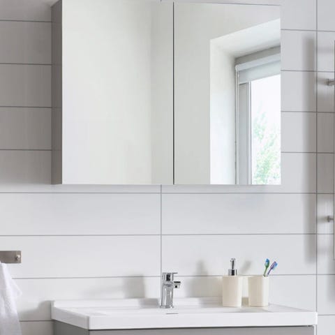 EKVIP Baderomsinnredning Speilskap med to dører, egnet for baderomsbruk. Produktet har et moderne design med speilflater og gir oppbevaringsplass bak dørene.