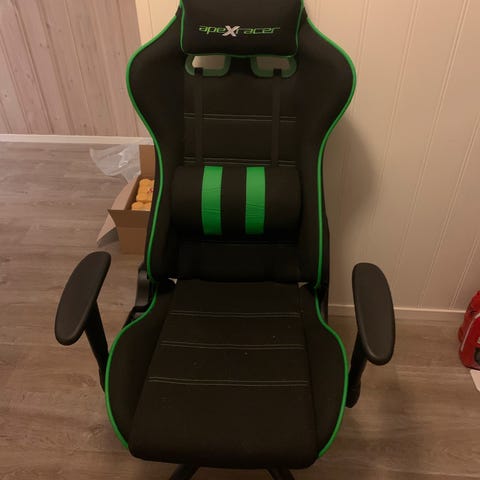 Veldig pent og lite brukt Cougar gamingstol i svart skinn med rosa detaljer.