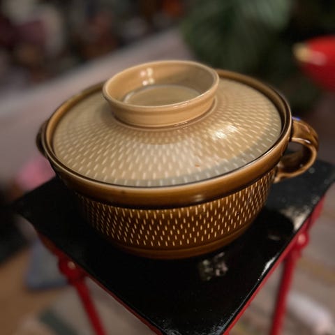 Relativt pent brukt, men noen mindre skår på håndtak og hjørnet.