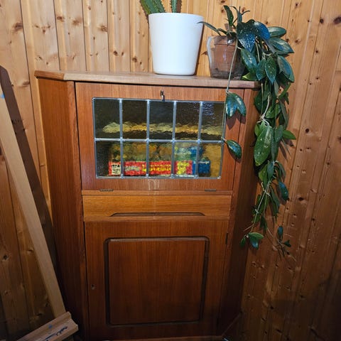 Kjempe fint hjørneskap i teak.