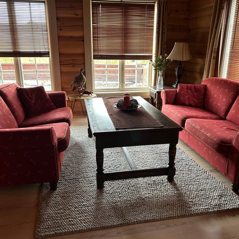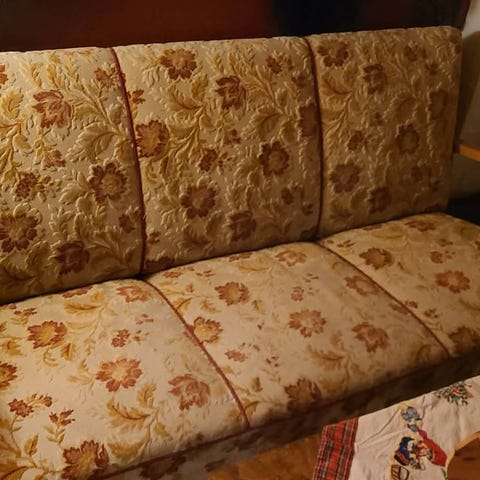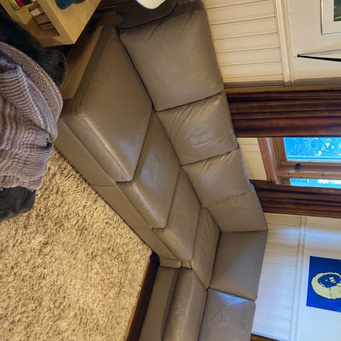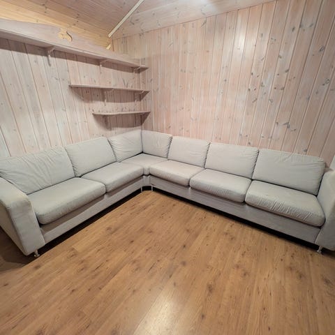 Vinkelsofa som er omtrent 210 cm lang i den ene enden og 185 cm i den andre enden gis bort. Veldig pent brukt og komfortabel å sitte i.