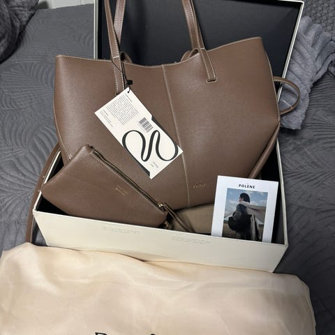 Selger en nydelig Polène-veske i en varm fargetone Vesken er i meget pent tilstand fremstår som nesten helt ny, uten slitasje eller merker.