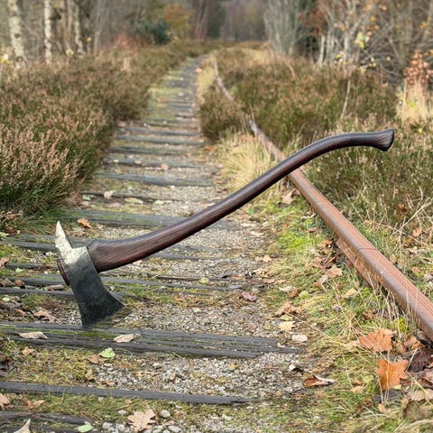 Denne funksjonelle kampøksen er smidd med høy presisjon og klar til å gjenspeile kraften fra vikingtiden. Enten den brukes til reenactment eller som utstillingsobjekt, taler dens tilstedeværelse tydelig for dens autentisitet.