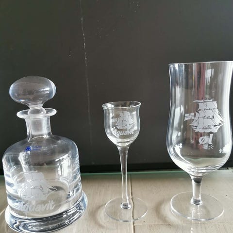 Magnor seidel ølkrus og skute whiskyglass