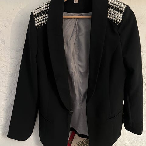 Forever21 blazer i størrelse S, laget av polyester, i gullfarge. Jakken har en tettsittende passform og langermet design, egnet for kvinner.