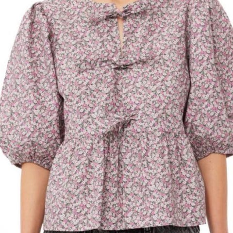 nydelig knytetopp i poplin fra ganni selges da den ikke lenger passer. størrelse 36 🤍 bare brukt et par ganger. noe krøllete da den ikke har blitt steamet, men ingen bruksmerker. selges billig på grunn av flytting 🚚 kan hentes i oslo eller sendes med posten eller instabox på kjøpers regning 💌