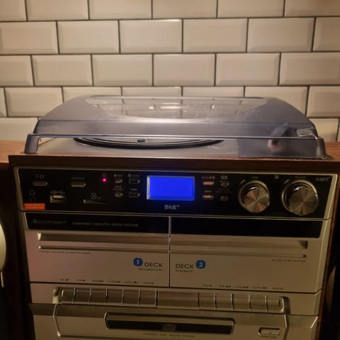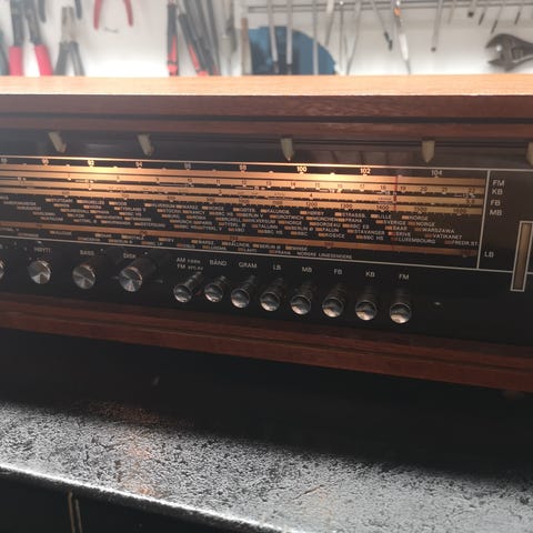 Enheten er i helt grei/brukbar stand – kosmetisk noen normale bruksspor og støv (se bilder), men teknisk fungerer den fint etter det jeg har testet (lyd ut alle kanaler, radio fungerer, display OK, knapper responderer).