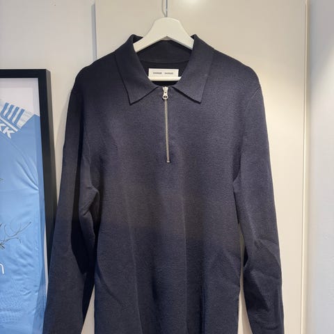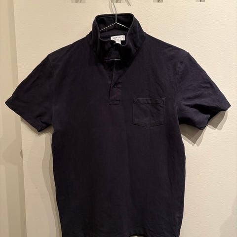 Sunspel Long Sleeve Polo Navy størrelse XXL