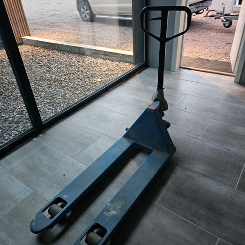 Max Type C250 pallettruck i gul farge. Egnet for håndtering av paller i ulike lager- og transportmiljøer. Virker som den skal