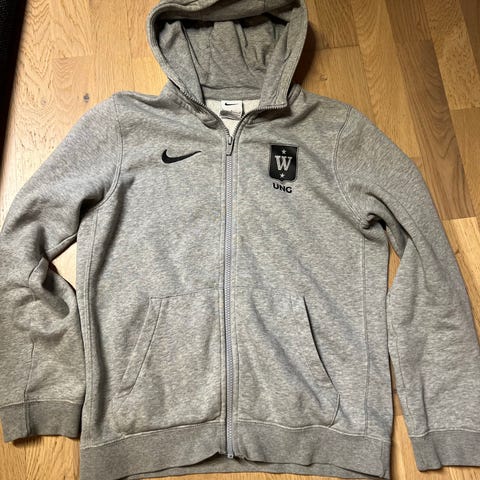 Nike hettegenser for barn i størrelse 158 cm. Fargen er marineblå. Genseren har hette og glidelås foran. Passer til ulike sportsaktiviteter og hverdagsbruk. kan sendes kjøper betaler