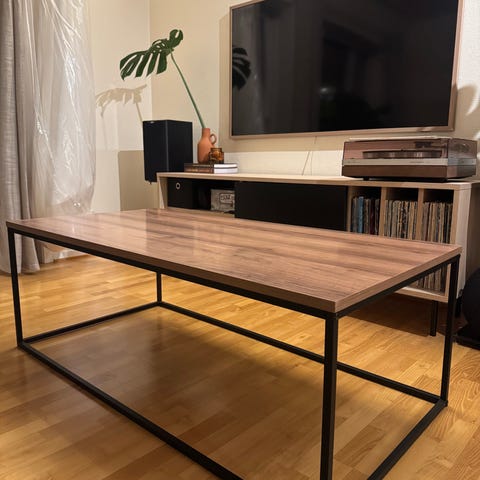 Bord i nyhavnserien fra Fagmøbler. Er tiltenkt som et sofabord, vi har brukt det som en tv-benk.
