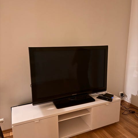 Samsung TV 55 tommer. 10 år gammel. Fungerer men det er lyse felt i hver side, så helt frisk er den ikke!