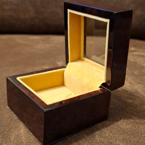 Boksen er tom (uten klokke) og selges som samlerobjekt/tilbehør.