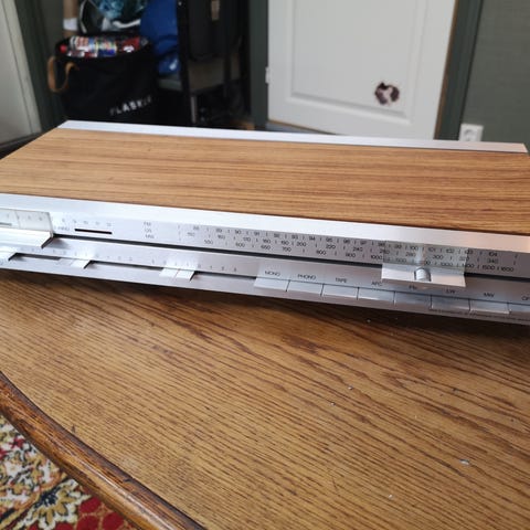 Indikatorlampene/lysene er ute (stereo, tuning osv. – vanlig aldersslitasje på disse 50 år gamle modellene). Kan byttes relativt enkelt med nye pærer (fås på eBay, Danish Sound Parts eller HiFi-spesialister for 50–200 kr).
