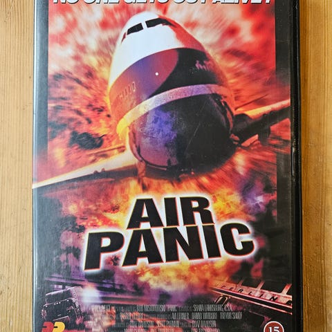 Air Panic DVD med filmcover som viser et fly og eksplosjoner.