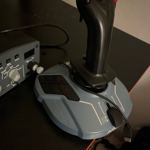 Thrustmaster joystick med flere knapper og justerbar base. Svart farge og ledningsbasert tilkobling. Egnet for bruk med PC til flysimulatorer og lignende spill. Funker på både ps3(kanskje og ps4 men det veit eg ikkje) og PC. den har ikkje blit brukt på lenge pg har bare sittet og støvet vekk (som du ser på bildene)