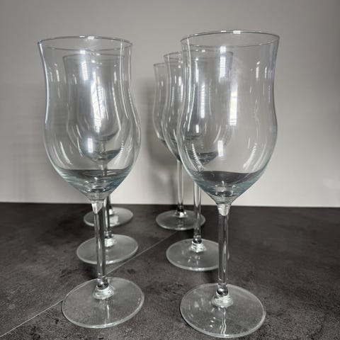 Jeg selger 6 stk noie vinglass 63 cl i koksgrå, nesten ikke brukt. Det er ingen synlig bruksmerker på de.