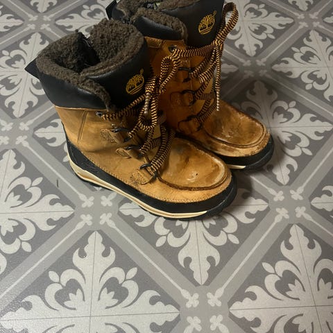 Timberland barn vintersko i størrelse 32. Skoene har en kombinasjon av materialer med isolerende fôr for varme og komfort. Egnet for bruk i kaldt vær.
