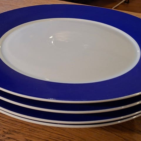 Tallerkener er i pen stand uten hakk og riper, perfekt til hverdag eller fin borddekking.