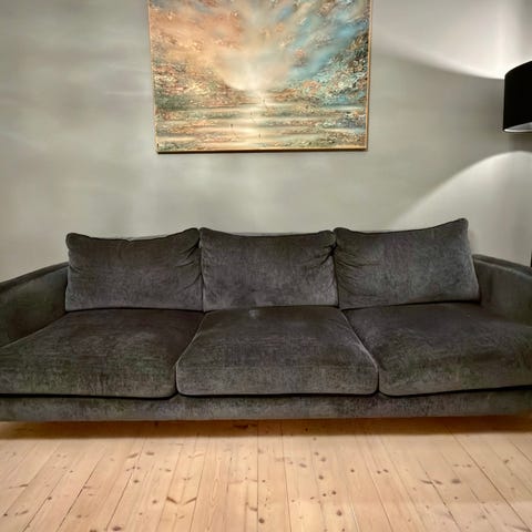 Sofacompany, sofa, 3-seter, velour, oransje, rust, dansk design, moderne sofa, stuesofa, komfort, brukt sofa, sofa til salgs, møbler, interiør, couch, designsofa, stue, leveringsmulig, komplett sofa, klassisk, elegant, robust, kvalitet, møbel