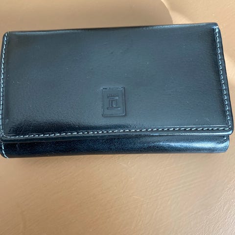 GUESS dame lommebok laget av svart lær. Lommeboken har flere kortlommer, glidelåslukking og et rom med glidelås for mynter. Designet for å holde personlige eiendeler organisert. Helt fin på utsiden noe slitasje på insiden