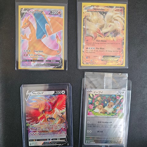 Mye kort fra White flare, surging sparks mm og mye eldre kort fra barndommen inkl Dark Charizard holo, Venusaur Holo etc.