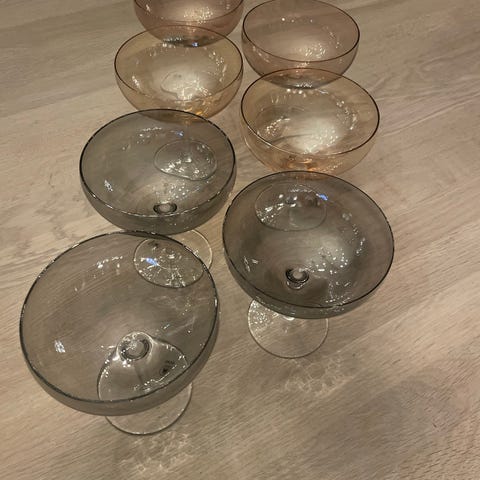 Jeg selger mine 6 stk Noir champagneglass 36 cl i koksgrå. Disse er nesten aldr brukt og har ingen synlig bruksmerker.
