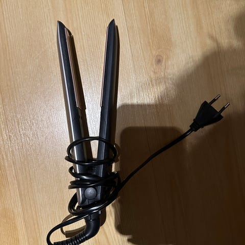 Pent brukt rettetang i fargen blå. Funker veldig bra og kan justeres varme nivå på.