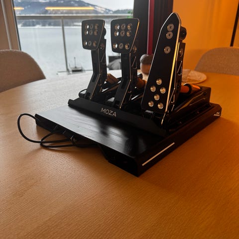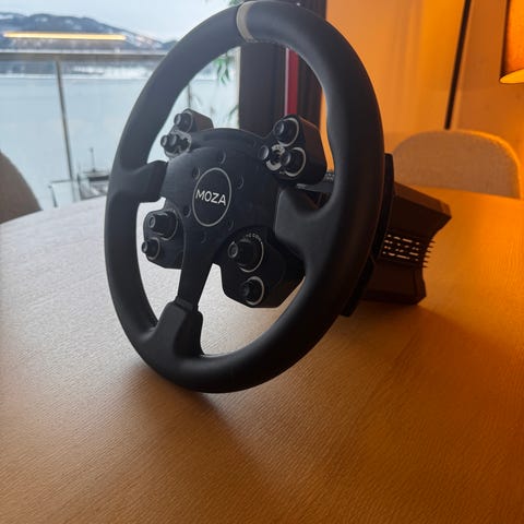 Så godt som nytt, kun testet ut i 2-3 uker. 100 kg load cell. Med stivere fjær og gummi, ble det veldig bra. Usb kabel for direkte tilkobling til pc og kabel for tilkobling til Moza base følger med.