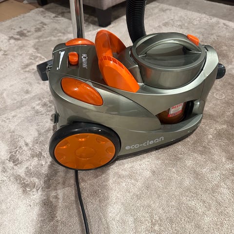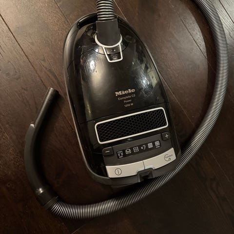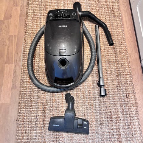 Miele Power 1600 støvsuger med effekt på 1800 W. Farge beige. Modellen har flere innstillinger for tilpasning av sugekraft. Leveres med tilbehør som oppbevares i støvsugeren.