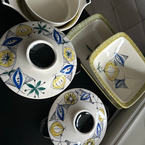 Selger to originale Cathrineholm-skåler i modellen Stripes, designet av Grethe Prytz Kittelsen. Dette er den minste størrelsen i serien. Skålene er laget i emaljert stål og kommer i rødt/hvitt og oransje/hvitt. Perfekte til snop, nøtter eller småting, og et flott tilskudd for samlere eller for deg som liker ikonisk norsk design.