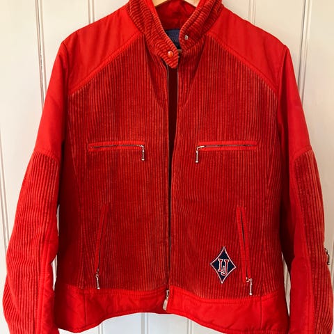 Ljungberg skijakke og bukse. Jakke i størrelse 52, bukse i størrelse 50. Jakken har hette, og buksen har elastisk midje og snøring ved bena. Passer til skigåing.