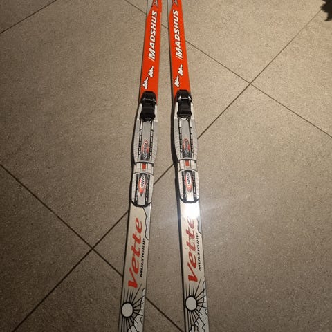 Madshus Frost langrennsski med bindinger og Swix staver.
