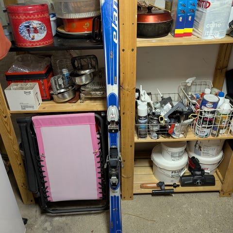 Völkl Racetiger alpinski med en lengde på 126 cm. Skiene har integrerte bindinger og er egnet for alpint bruk. Fargene på skiene er gul og blå.