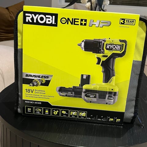 Børsteløs slagbormaskin 18V i Ryobi One+ serien, som du kjenner til. Medfølger 1xLithium 2,0Ah batteri og hurtiglader. Medfølgende batteri er garantert ubrukt. Settet kom originalt med to stk batteri, men det andre batteriet er brukt av meg, så da eg ikkje kan garantere kvalitet/ holdbarhet etc. legger eg det ikkje med. Børsteløs motor gir en holdbar maskin fylt med høyeffektiv ny teknologi og eTorque momentkontroll. 24trinns momentinnstilling. Maks.dreiemoment på 85 Nm. 2 gir, turtall 1800 omdr.min. Slagtall 400 slagmin. Metallchuck 13mm. Borkapasitet i betong 13mm, tre 54mm og 13mm i stål. LEDlys. Leveres med hardplast koffert.