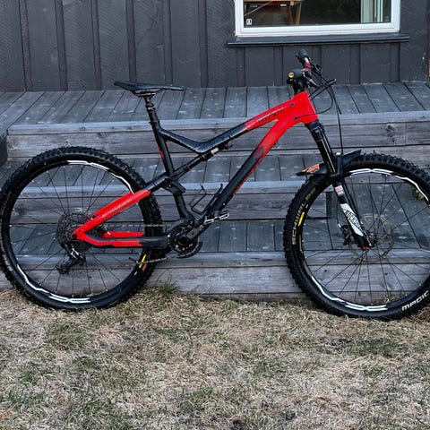 Slank og lett 12 girs cross country mountain karbon fulldemper på ca 14,5 kg. Passer de som veier under 100 kg, er mellom 165-185cm høye.