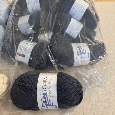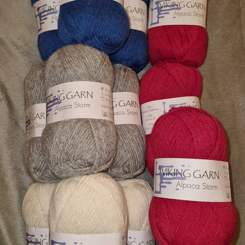 Garn fra Viking. Alpaca Storm. Selges samlet. Alt i samme innfarging. Har vært oppbevart i røyk- og dyrefritt hjem. Lyseblå farge (520)