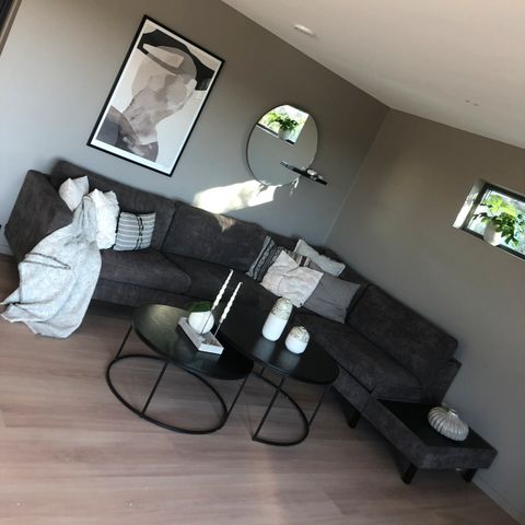 Hjellegjerde hjørnesofa med sjeselong,stor med plass til mange. Ingen hull eller rifter,men en pute er glidelåsen ødelagt. Røyk og dyrefritt hjem. Selges pga flytting. Må hentes senest 1.februar.