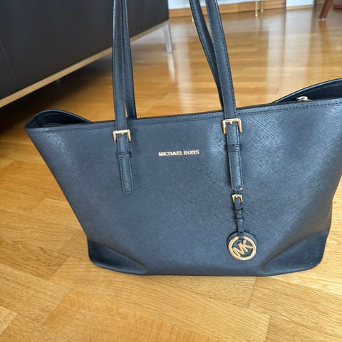 Selger Michael kors veske i svart bredde 48cm/ lengde 28cm , vesken er i god stand med normal bruksslitasje. En av hankene er byttet ( se bilder ), men dette påvirker ikke bruker av vesken .