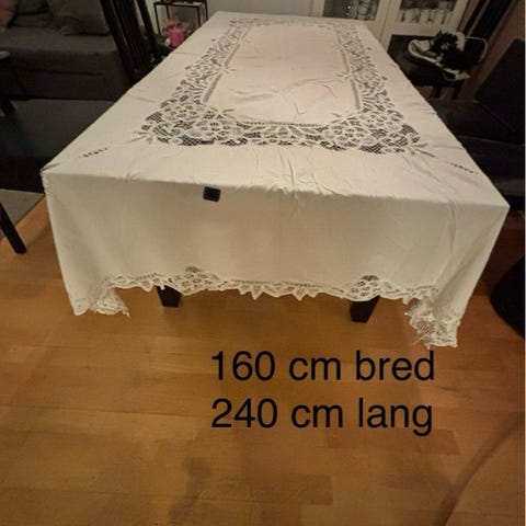 IKEA tekstilduk i hvit farge. Tekstilet har et mønster som gir et diskret dekorativt preg. Passer til bruk som duk på bord eller andre flater.