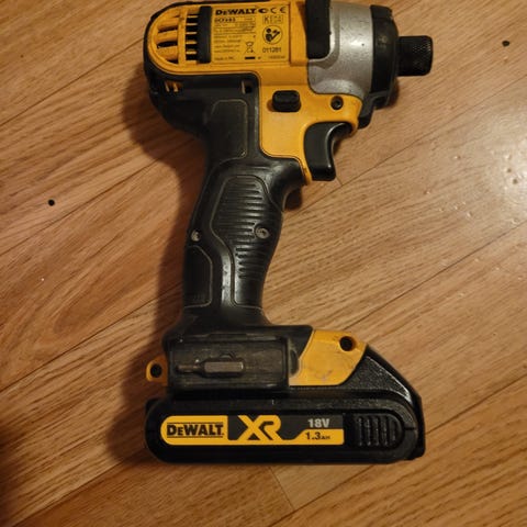 1 stk. DeWalt DCD709 børsteløs slagdrill, batteri og lader. Et full ladet batteri varer ca 5-6 dager med mye drilling.